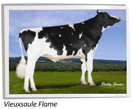 Flame is a Numero Uno who ranks extremely well on his US evaluation with a TPI score of +2549. He sires extremes for component deviations, low Somatic cell Score and Longevity. He’s also very strong for Daughter Fertility. While his LPI numbers are not quite as extreme, bringing Freddie in on the maternal side is cause enough to consider using him. Flame is destined for greatness.